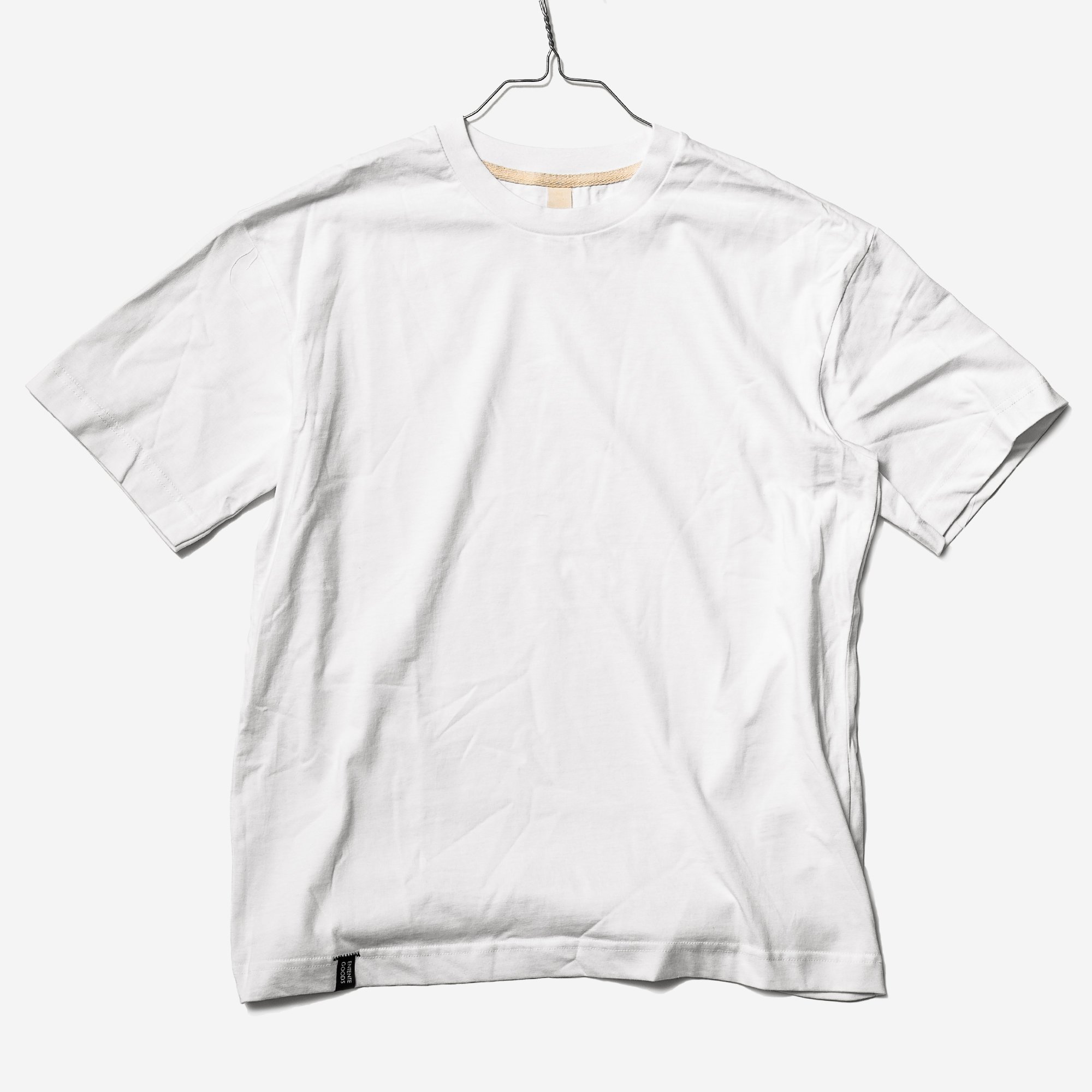 Nothing, yet everything: The Entente Akkurat Hudeln T-shirt. A plain white shirt, made out of a heavy weight soft upcycled cotton.